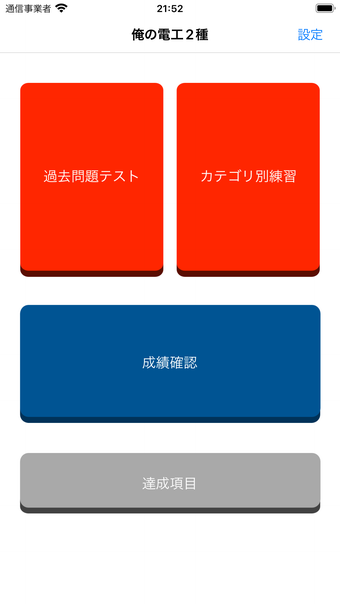 このアプリでは、シンプルな正誤クイズや年ごとのシンプルな合格・不合格判定を提供しています。また、基礎理論や配線図などの異なるカテゴリで練習することもできます。アプリではテストを一時停止して再開することができるため、電車やバスの空き時間に簡単に挑戦することができます。各問題は回答数と正答数を記録し、自分の苦手な部分を特定することができます。また、アプリはGame Center(※2)もサポートしており、テストを受けて実績を解除することができます。